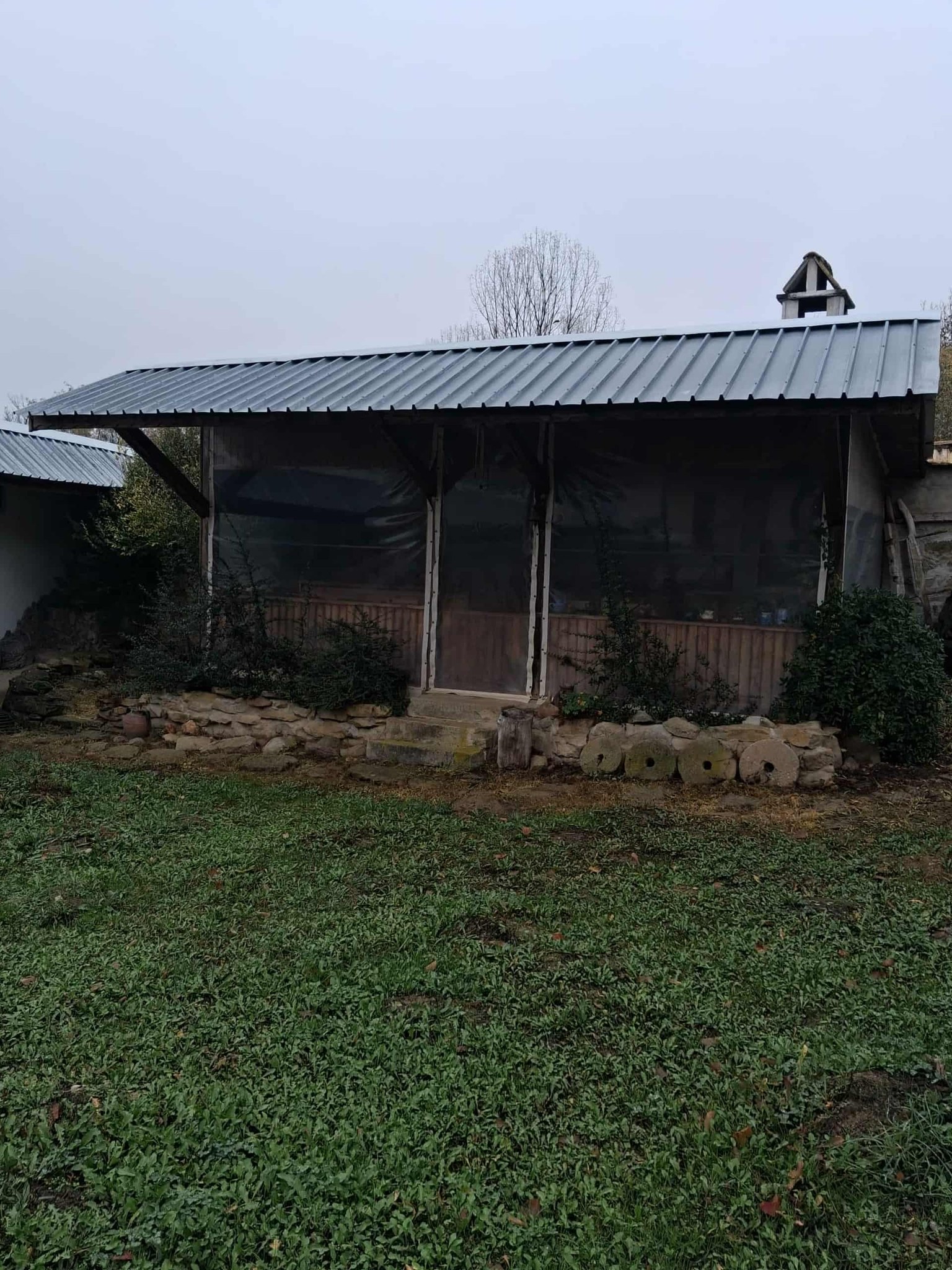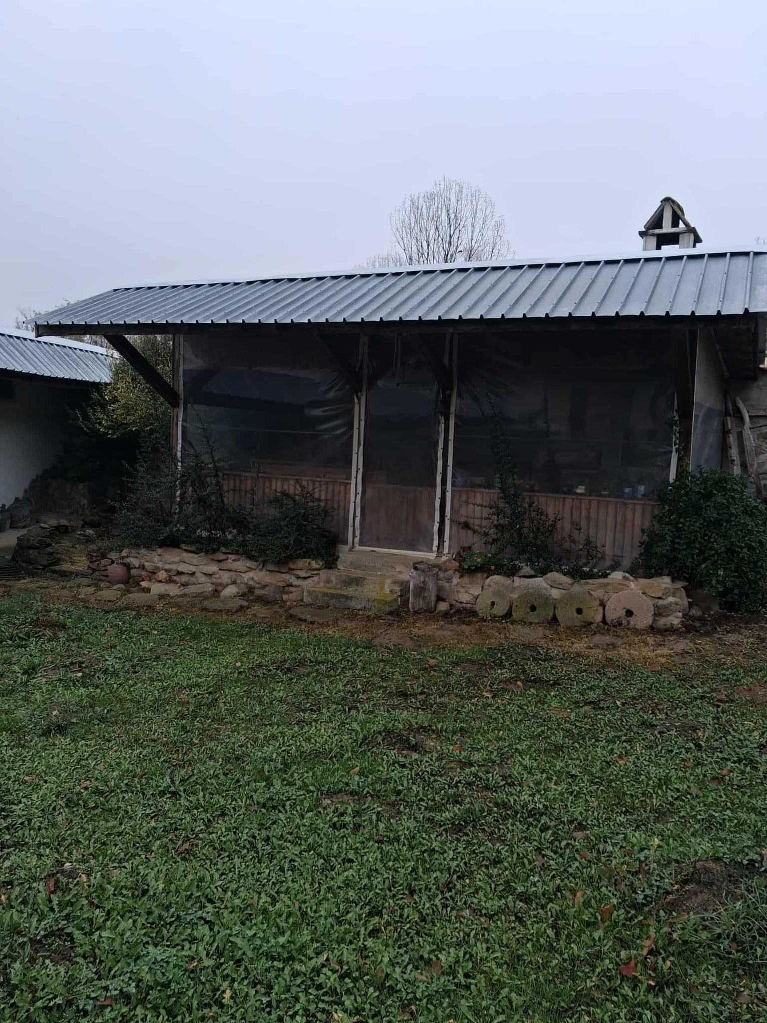 New metal roofs on the outbuildings